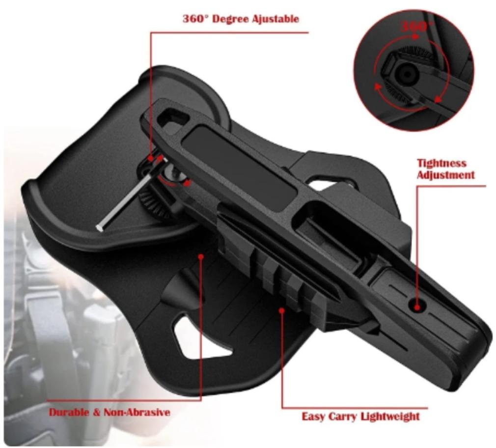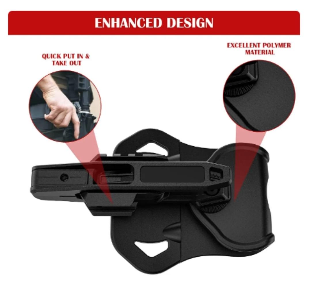 – Gun holster suitable for most pistols with rail below barrel